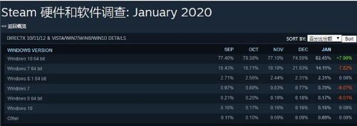 全球最大PC游戲平臺Steam發(fā)布了2020年1月份玩家軟硬件統計數據,披露了顯卡、處理器、系統等份額數據。