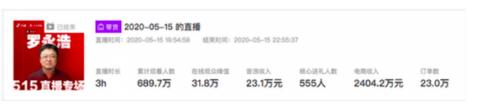 5 月 15 日的直播中,羅永浩變身吃播,不過(guò)觀(guān)眾峰值人數 31.8 萬(wàn),遠不及首次。直播兩個(gè)小時(shí)后,直播間觀(guān)看人數降為 24.2 萬(wàn),而在直播結束之前,直播間觀(guān)看人數僅剩 7 萬(wàn)。