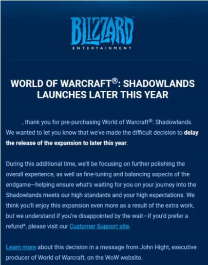 在廣大 WOWer 翹首以盼的日子,暴雪宣布了《魔獸世界:暗影國度》從原定的 10 月 27 日上線(xiàn)日期跳票到了年底,而《守望先鋒2》和《暗黑破壞神4》更是遙遙無(wú)期。