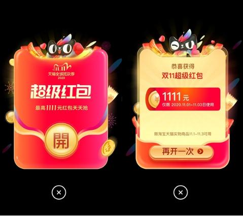 第二波:11 月 11 日(10 月 21 日 - 11 月 11 日領(lǐng)取的紅包可用)