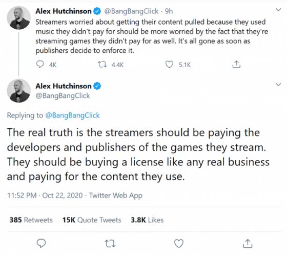 他在 Twitter 上說(shuō):“游戲主播擔憂(yōu)他們的內容被撤掉,因為他們使用了沒(méi)有購買(mǎi)的音樂(lè )。事實(shí)上,他們直播的游戲也沒(méi)有購買(mǎi),這只能讓他們更擔憂(yōu)。一旦發(fā)行商們決定強制執行,就全部消失了。