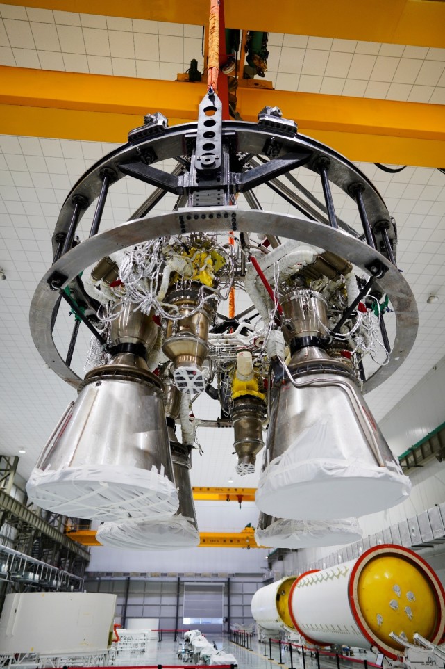 近日,藍箭航天空間科技股份有限公司(藍箭航天)完成朱雀二號液體運載火箭首臺一級四機發(fā)動(dòng)機裝配工作。