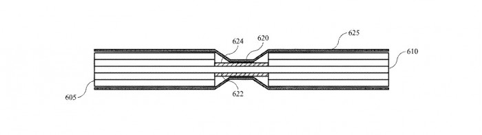 蘋(píng)果公司以前曾生產(chǎn)過(guò)不同形狀的電池,以便更好地利用空間,例如,2015 年的 MacBook,其中分立的不同的電池堆在一起,而這個(gè)新的建議是一個(gè)單一的電池單元,其特點(diǎn)是在它要彎曲的地方有一個(gè)更薄的部分,鉸鏈部分的特點(diǎn)是厚度小于第一個(gè)部分的厚度和第二個(gè)部分的厚度。
