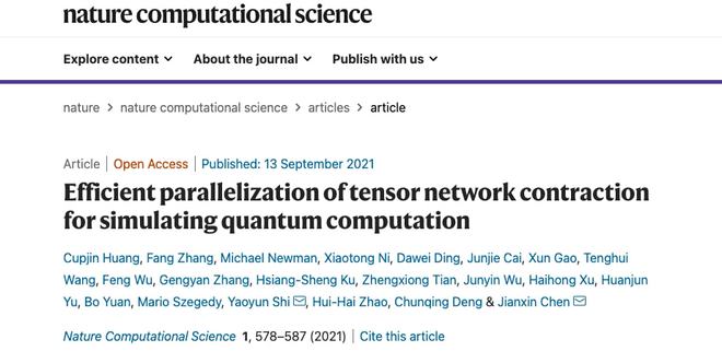 據悉,達摩院量子實(shí)驗室與阿里云 ECS 合作者在量子計算經(jīng)典模擬課題上的研究成果近日在 Nature 子刊《Nature Computational Science》上發(fā)表。該論文提出一分布式張量網(wǎng)絡(luò )收縮算法框架,在一量子電路的基準模擬任務(wù)上達到 3 個(gè)數量級以上的加速。