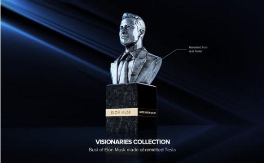 雕像高度為 20cm 左右,原材料由特斯拉車(chē)輛的汽車(chē)部件熔鑄而成。Caviar 營(yíng)銷(xiāo)主管稱(chēng),半身像的材料來(lái)自一輛藍色特斯拉 Model 3 的金屬部件,比如引擎蓋、車(chē)門(mén)和其他面板等。