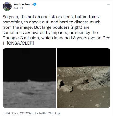 隨著(zhù)月球車(chē)的抵近,物體的真實(shí)面目也將變得愈加清晰。目前最有可能的一種猜測,就是月球的這部分布滿(mǎn)了撞擊坑,且周邊散落著(zhù)相當多的大塊碎片。